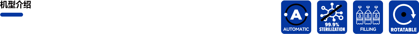 送瓶 → 氣動取瓶插模 → 消毒 → 定量灌裝 → 送蓋→ 氣動取蓋 → 旋蓋 → 脫模(模具循環)→ 出瓶